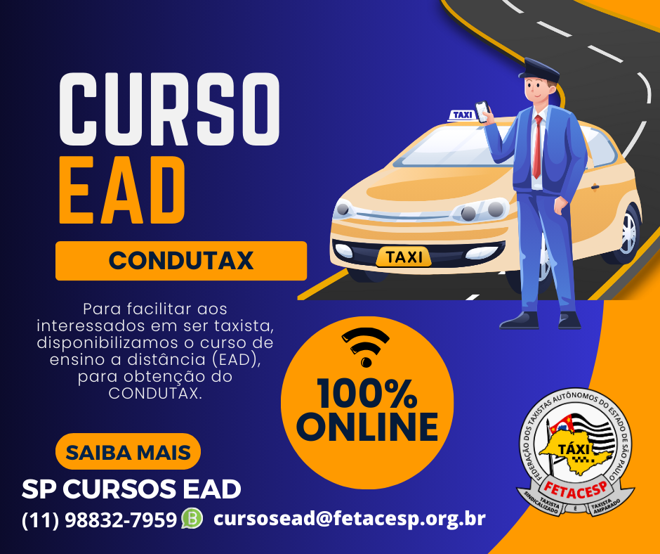 Para maiores informações, procure o Sindicato de Taxistas mais próximo ou a FETACESP através dos telefones (11) 2221-5433 / (11) 988327959 WhatsApp ou e-mail cursosead@fetacesp.org.br