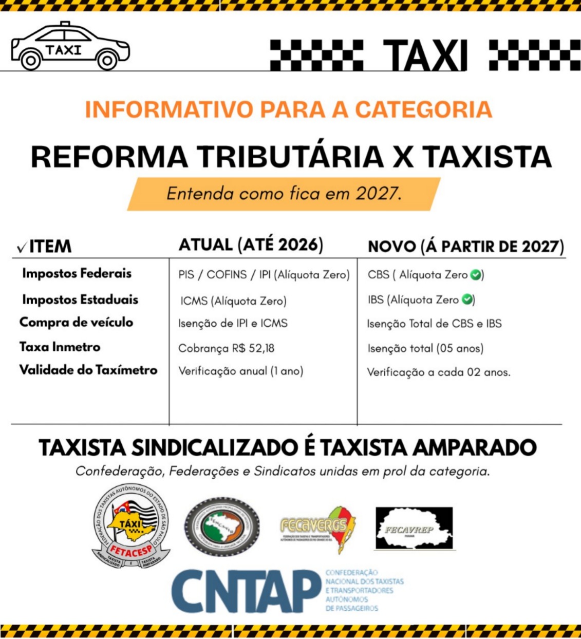 A categoria do táxi comemora essa conquista e continuamos trabalhando para garantir os direitos e benefícios dos taxistas brasileiros.